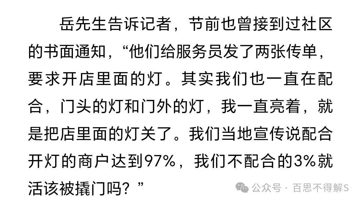 有人更是质疑,那些官方口中97%配合的商户,真的是自主而甘愿地接受安排吗?其中是否存在隐性的强制与被迫屈从?这种问题并不是仅针对此次事件所独有,而是折射出对所有类似强制措施背后的深层系统性困惑。这件事激起的不单单是个别人的情绪波动,它其实戳中了很多普通人的痛点——那种对个体权益可能被侵害的恐惧,以及对不透明规则的本能排斥。岳先生的遭遇成为了导火索,而网友的讽刺、愤懑和疑问已经转化为一场更广泛的舆论风暴,仿佛在合声质问:究竟应该如何用权力来守护而非污损每一个个体的尊严?这种对公平与尊重的强烈呼声,已经开始倒逼有关组织和部门重新正视他们的行为边界。